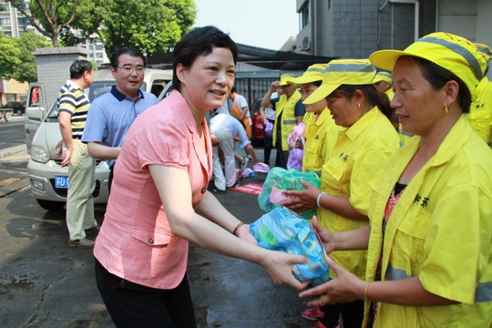 炎炎夏日,烈日当空,常州市进入大暑后连日高温,钟楼领导心中始终牵挂着奋战在一线岗位上的职工。7月26日,钟楼区委副书记、政法委书记董彩凤、副区长何海平及区总工会主席许立新等一行带上夏令慰问品前往高温作业单位,看望在高温下作业的劳动者们,为他们送上一丝清凉。 区领导一行首先来到钟楼交巡警中粮岗,向交巡警们亲切问候后,感谢他们为城市交通作出的贡献。随后,他们来到了钟楼环卫处会馆浜路转运站慰问那里的一线环卫工人,并把准备好的慰问品送到他们手中,感谢他们用艰辛的劳动为大家创造了一个洁净、优美、环境怡人的城市环境,同时希望环卫工人们做好防暑降温和自我保护工作,确保在高温条件下作业的安全。区领导一行还来到精研科技和安置工地,对工人们所付出的辛勤劳动表示感谢,并希望大家为钟楼的建设多做贡献。(姜小明 李荦)