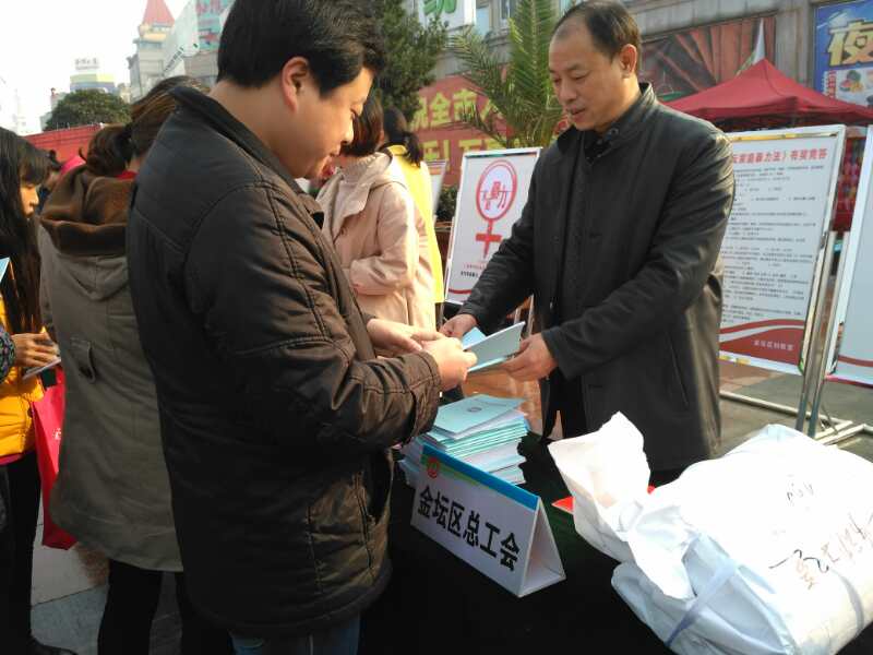 12月2日,在全国迎来第三个“12.4”国家宪法日以及全国法治宣传日之际,全市各级工会组织积极开展法律宣传咨询服务活动。常州市、溧阳市、金坛区总工会等,开展了以“情系劳动者,法在你身边”为主题的工会劳动法律宣传咨询服务活动,为职工群众发放了5000多册《职工劳动权益简明手册》和500多本“中华人民共和国宪法”读本,受到了职工群众的欢迎。 |