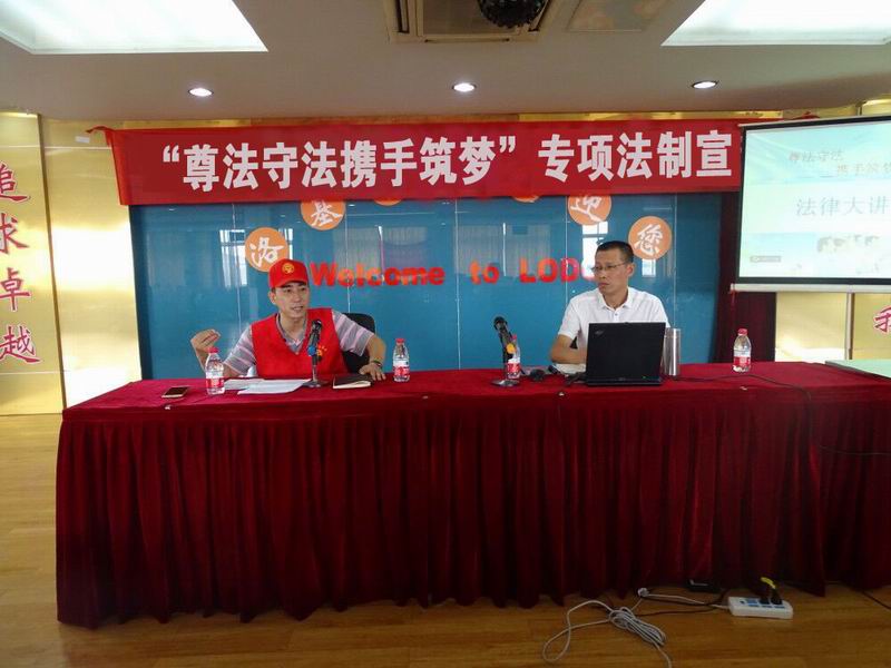 在“法律大讲堂”现场,区总工会民管(法工)部部长吴志伟围绕“尊法守法 携手筑梦”主题,进行了简单的宣传动员,讲清了意义、明确了部署、提出了希望;宣传小分队的成员现场为洛基木业有限公司的工会干部、听课职工赠送了区总工会专门印制的专项法治宣传读本;江苏省注册咨询专家、北京大学案例培训师邵宇昕老师围绕职工劳动保障和生产保护,结合法律法规和实践案例进行了详细生动的讲解授课。
