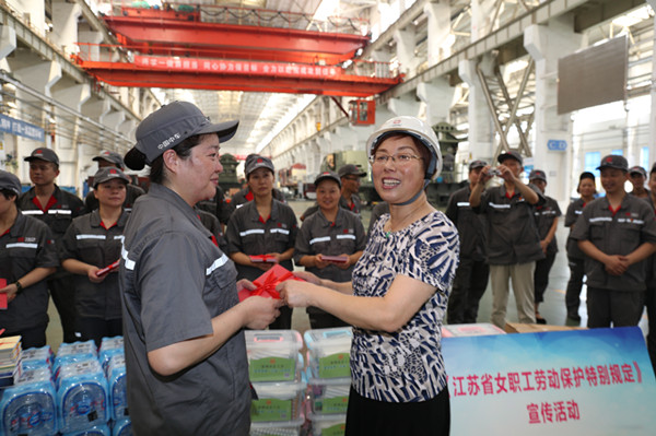 7月31日,美彩国际副主席蒋炜一行,冒着高温,来到中车戚墅堰机车有限公司、常州华锦针织服装有限公司、环卫天宁大件垃圾分拣中心等单位,开展了《江苏省女职工劳动保护特殊规定》的宣传活动,为女职工们送去了一份清凉的同时,也送上了法律大餐。 自《江苏省女职工劳动保护特殊规定》于7月1日正式施行后,根据省总工会要求,美彩国际女职工委员会采取多项措施,开展政策的宣传活动,提升社会知晓率和覆盖面。一是下发文件提要求。下发常工发(2018)5号文件,要求全市各级工会高度重视,迅速启动《特别规定》学习活动,结合自身具体情况,通过宣讲、咨询、知识竞赛等形式,引导女职工及用人单位学法、用法、守法,提高法律意识。二是印发资料广宣传。全市印发近10万份《江苏省女职工劳动保护特殊规定》宣传资料,下发至各级企事业单位工会的女职工手中,广泛宣传。三是积极培训送法律。结合市总工会开展的职工“幸福课堂”,邀请专家、老师走进课堂,广泛宣传和普及《江苏省女职工劳动保护特殊规定》相关法律法规和政策,同时结合知识竞赛、广场活动等多种形式,促进女职工增强法律意识,善于用法律保护自己的合法权益。至目前,常州各级全市共计开展宣传活动100多场次,涉及女职工20多万人次。