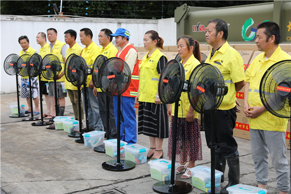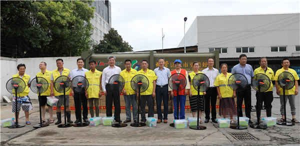 8月3日上午,美彩国际在龙江路生活垃圾转运站举行向全市环卫休息点赠送电风扇仪式。300台电风扇送到环卫工手上。市政协副主席,市总工会主席、党组书记徐伟南出席仪式并讲话。市城管局领导参加仪式。