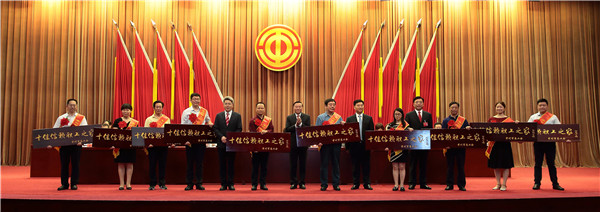 闭幕会上,授予江苏金昇实业股份有限公司工会委员会等10个集体“常州市十佳信赖职工之家”称号,授予常州市国土资源局天宁分局机关分工会等10个集体“常州市十佳信赖职工小家”称号,授予溧阳市天目湖镇总工会副主席李爱英等10名同志“常州市十佳职工最可信赖娘家人”称号,授予常州市春秋乐园发展有限公司第三工会小组长严俊等10名同志“常州市十佳优秀工会积极分子”称号,授予中共常州市委市级机关工作委员会副书记杨文华等10名同志“常州市十佳优秀工会之友”称号。 |