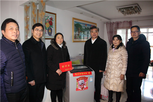 2019年1月11日下午,市政协副主席,市总工会主席、党组书记徐伟南一行冒着严寒,慰问快递员、特困职工、农民工,将党委政府和工会组织的温暖问候送到职工身边。 下午2点,徐伟南一行首先到达位于天宁区元丰巷25号顺丰速运营业网点,看望物流行业的快递员小哥们。该网点的主要服务范围东至丽华北路、南到吊桥路、北至博爱路、西到晋陵路,现有一线快递小哥、二线仓管员及管理人员共近40人。徐伟南仔细询问了他们的日常工作情况,送上节日慰问品。徐伟南道:“党委政府十分关心你们,工会组织也时时挂念,在常州的大街小巷中都留下了你们辛劳的身影,风雨无阻、寒暑不避,你们的辛勤付出换来了市民便捷的生活,在工作中一定要注意自身安全,合理安排时间,保重身体健康”。 随后,徐伟南一行来到老三集团特困职工温俊家中。温俊今年49岁,河南人,丈夫身患疾病无经济来源,女儿目前大学就读,家庭生活压力大、负担重。温俊今年参加了市总工会开展的“温暖多一度•圆梦微心愿”活动,获得了一台自动洗衣机的心愿补助。徐伟南关切地问候她的家庭情况,说道:“希望你们积极乐观地生活下去,不要被困难打倒,待你丈夫病情好转,党委政府和工会组织会在就业等方面帮助你们渡过难关。”接着,徐伟南一行为她们送上了慰问品、慰问金和爱心年夜饭。 最后一站,徐伟南一行来到常宜高速工程项目建设农民工人群中,给农民工兄弟姐妹们送去新春的慰问品。常州至宜兴高速公路是江苏省高速公路网规划中“五纵九横五联”的“纵三”组成部分。徐伟南对农民工兄弟表示了感谢和崇高敬意,说道:“感谢你们对常州城市建设作出的巨大贡献,党委政府向来高度重视农民工的工作生活情况,工会组织也将一如既往地做好你们的‘娘家人’。希望你们在工作的同时,要注意劳动安全、注意身体健康,愿你们过上一个温暖祥和的新春佳节”。 当天,市总工会还慰问了轨道交通2号线三角场站的建设工人和江苏煤炭地质勘探三队特困职工高峰。据了解,今年市总本级计划发放慰问品1400余份 ,慰问对象包括物流行业快递小哥、农民工、环卫工人以及其他在两节期间坚守岗位的一线职工。