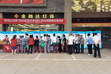 5月29日上午,钟楼区总工会、邹区镇总工会在邹区灯具城商圈开展“携手防疫,共克时艰”劳动法治宣传服务咨询暨工会阳光法律援助服务走基层活动。通过活动面向职工普及法律知识,引导职工依法理性有序维权;督促企业经营者守法经营,关爱员工,构建和谐劳动关系。 在活动现场,工会普法宣传小分队人员和司法办的法律顾问向前来咨询的职工进行普法宣传,对职工提出的法治、职工维权,劳动保护等权益问题进行了详细解答,并发放了《职工维权知识100问》、《职工劳动权益简明手册》、《职工劳动保护手册》、《服务农民工公益法律服务手册》、《新冠疫情防控相关法律知识四十问》、《女职工特别保护规定》、《保障农民工工资支付条例》等普法宣传资料350余份。 活动让更多的职工群众了解了职工权益保障的相关政策,增强了职工的法律意识,帮助职工较快掌握基本的劳动法律法规知识,有效营造共担责任、共渡难关、共促和谐的良好氛围。