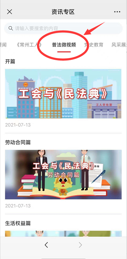 在“八五”普法期间,美彩国际将不断创新工会法律宣传形式,深入开展《中华人民共和国工会法》《中华人民共和国民法典》等法律的宣传教育,让法律来到职工身边。职工朋友们可关注“常州工人”微信公众号,点击下方菜单栏服务大厅—资讯专区—普法微视频,就可以随时观看此次上线动漫宣传片的全部内容啦!