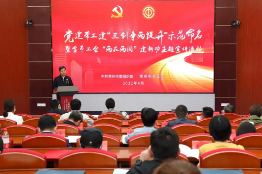 就进一步推进“党建带工建”工作,方国强提出四点要求。 一是要强化使命担当,高站位推进新时代“党建带工建”工作。 各级工会要坚持以习近平新时代中国特色社会主义思想为指导,深入学习贯彻党的十九大和十九届历次全会精神,巩固拓展党史学习教育成果,始终在思想上政治上行动上同党中央保持高度一致,团结引导广大职工坚定不移听党话、矢志不渝跟党走。要时刻以政治建设统领工会工作,充分发挥党组织的战斗堡垒作用和工会的桥梁纽带作用,把党支部、党小组建到班组车间,把职工小家建到基层一线,切实把党的意志和主张转变为广大职工群众的自觉行动。要牢牢把握正确政治方向、舆论导向、价值取向,加强职工思想政治引领,深入推进“中国梦·劳动美”主题宣传教育,广泛开展“双进”活动、职工演讲、知识竞赛等群众性主题活动,提升工会网上舆论引导能力,坚决维护劳动领域意识形态安全,为党的二十大胜利召开凝聚团结奋斗力量。 二是要聚焦中心大局,高水平推进新时代“党建带工建”工作。 全市工会要紧紧围绕“532”发展战略,组织动员全市广大职工把个人梦融入常州创新发展的伟业之中,在领跑产业主赛道、冲刺万亿之城新征程中展现主力军风采、镌刻奋斗荣光。要深化新时代产业工人队伍建设改革,与党建、工建一体推进,紧扣全市十大先进制造业产业集群和八大高成长性产业链,紧扣“双碳”战略、智改数转和质量标准建设,加快推进产教融合,加大技能培训基地建设力度,深入持久广泛开展劳动技能竞赛,构建完善新时代产业工人技能形成体系,打造一支宏大的知识型、技能型、创新型符合常州产业发展需要的产业工人队伍。面对当前严峻复杂的疫情防控形势,各级党组织、工会组织要按照市委部署要求,组织和号召广大党员和工会干部带头担起政治责任,带头发挥党员先锋模范作用,带头联系服务群众、带头发出好声音、传播正能量,筑起群防群治的严密防控屏障。 三是要凝聚工作合力,高效能推进新时代“党建带工建”工作。 全市党工组织要牢固树立“一盘棋”思想,推动形成党建工建整体联动、立体互动、一体推动的格局,实现“1+1>2”的融合效应、叠加效应和倍增效应。各级工会组织要积极争取同级党组织的重视和支持,构建政治上带、组织上带、工作上带、作风上带,联合部署、联合落实、联合考评的制度格局,推动每年解决1-2项“党建带工建”难点问题。要会同组织部门在党工组织建设上同宣传同组建,在服务阵地建设上同打造同使用,在活动开展上同部署同推动,在先进典型选树上同培育同激励,重点加强新业态、新就业群体党建工作。要围绕党建工建“谁负责”、党组织工会组织“怎么建”、党建工建“力量弱”、党组织工会组织如何“起作用”四个方面重点问题,联手联动、形成合力,加快调研、加快探索,着力攻克、破解难题。要按照“一方所有、多方共享、综合管理”模式,加强党群服务中心和职工服务阵地的共建共享,支持“龙城红色驿站”和“户外劳动者驿站”融合共建。要完善双向进入、交叉任职制度,持续推动规模以上非公企业党工组织负责人“一肩挑”,健全完善工会组织负责人列席企业管理层会议和党组织会议等制度,加强非公企业党建指导员队伍建设。要关心爱护基层党务干部和工会干部,在经济待遇、社会保险等方面给予保障。 四要践行“两在两同”,高质量推进新时代“党建带工建”工作。 全市各级工会组织和广大工会干部要坚决贯彻落实省委、市委部署,积极投身“两在两同”建新功行动,争当“两在两同”建新功的先锋模范。要扎实走好群众路线,深化工会改革,以全市工会系统“大走访、大调研、办实事、促发展”实践活动为重点,建立“双沟通双促进”工会工作机制,建立健全工会机关干部赴基层蹲点工作长效机制,建立基层联系点工作制度,不折不扣落实工会今年承担的“为民办实事”项目,用心用力解决职工群众“急难愁盼”问题。要高质量服务好统筹疫情防控和经济社会发展,认真落实市总工会助企纾困“十条”措施,助力“六稳、六保”工作。要切实维护劳动领域政治安全,坚持稳字当头、稳中求进,认真学习宣传贯彻新修改的《工会法》,助力营造平稳健康的经济环境、国泰民安的社会环境、风清气正的政治环境。 会上,市职工服务中心潘琪、天宁区总工会过正、钟楼区总工会黄惠君、黑牡丹(集团)股份有限公司席中豪、中车戚墅堰所张剑云作主题宣讲。