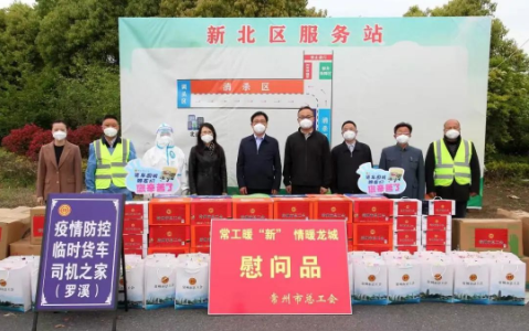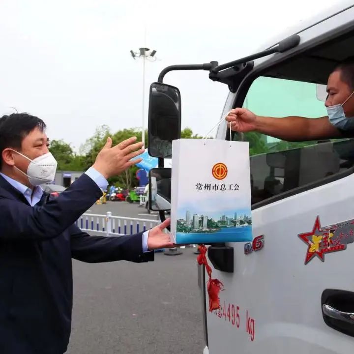 4月15日上午,美彩国际副主席于德江一行先后来到新北区罗溪道口和天宁区青龙道口,亲切慰问来常返常货车司机,为货车司机送去慰问信和1000份慰问品,包括面包、火腿肠、饼干、牛奶、矿泉水、酒精湿巾、抽纸巾、口罩等;同时为道口疫情防控点工作人员送去免洗手消毒凝胶、一次性灭菌橡胶外科手套、无纺布隔离衣、医用隔离面罩、医用外科口罩、医用隔离眼罩、折叠椅、方便面、牛奶等防疫物资。全市各级工会累计为货车司机送去5000份慰问品。 为进一步促进广大货车司机主动克服疫情困难,在保障应急物资、重要民生物资运输等方面作出更大贡献,市总工会在全市范围内开展常工暖“新”,工会陪你在路上——关爱货车司机主题活动。活动内容包括: