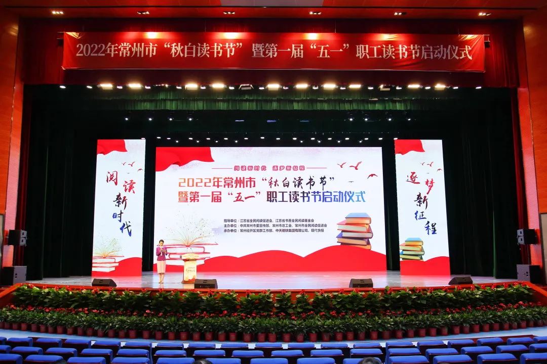 四月春恰好,读书正当时。4月22日下午,2022年常州市“秋白读书节”暨第一届“五一”职工读书节在中天钢铁集团正式启动。市委常委、宣传部长、市委秘书长、市全民阅读活动领导小组组长杭勇,副市长、市全民阅读活动领导小组组长蒋鹏举,中天钢铁集团董事局主席、总裁、党委书记董才平,常州经开区党工委书记顾伟国,市委宣传部副部长、市新闻出版局局长、市全民阅读活动领导小组办公室主任谢春林,市总工会党组书记、副主席刘卫国,市总工会副主席宣建强,市全民阅读促进会会长卢晓光等领导出席。