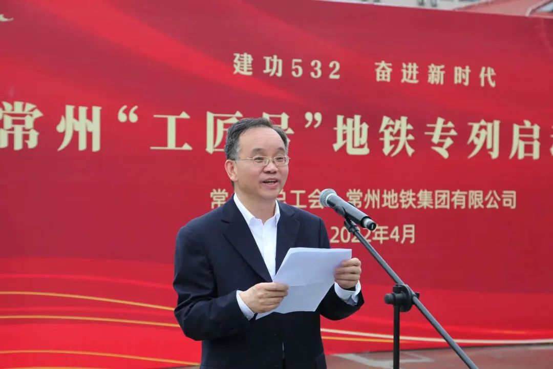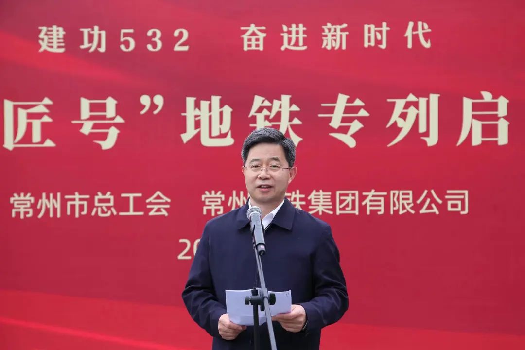 4月23日是常州解放73周年纪念日。上午,美彩国际和常州地铁集团有限公司在市工人文化宫广场举办“建功532、奋进新时代”常州“工匠号”地铁专列启动仪式,并专题开设“工匠号”地铁专列和工匠精神展示区。市人大常委会副主任、党组副书记,市总工会主席方国强出席并讲话。市总工会党组书记、副主席刘卫国主持仪式。全国劳模、省总工会兼职副主席、黑牡丹集团技术总监邓建军,全国人大代表、全国劳模、老三集团工会主席李承霞,常州地铁集团党委书记、董事长宋晓云,常州地铁集团总经理陶伟出席启动仪式。方国强、邓建军、李承霞、宋晓云、陶伟共同启动常州“工匠号”地铁专列。