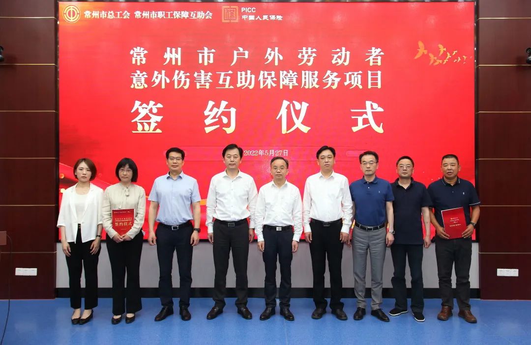 会上,常州市职工保障互助会与中国人民财产保险股份有限公司常州市分公司签订“常州市户外劳动者意外伤害互助保障”服务项目合作框架协议。此次签约,是市总工会深化推进民生实事项目的创新之举,旨在通过与专业的社团组织和优质的第三方企业合作,让更多的户外劳动者享受到免费专享保障和专业及时服务。