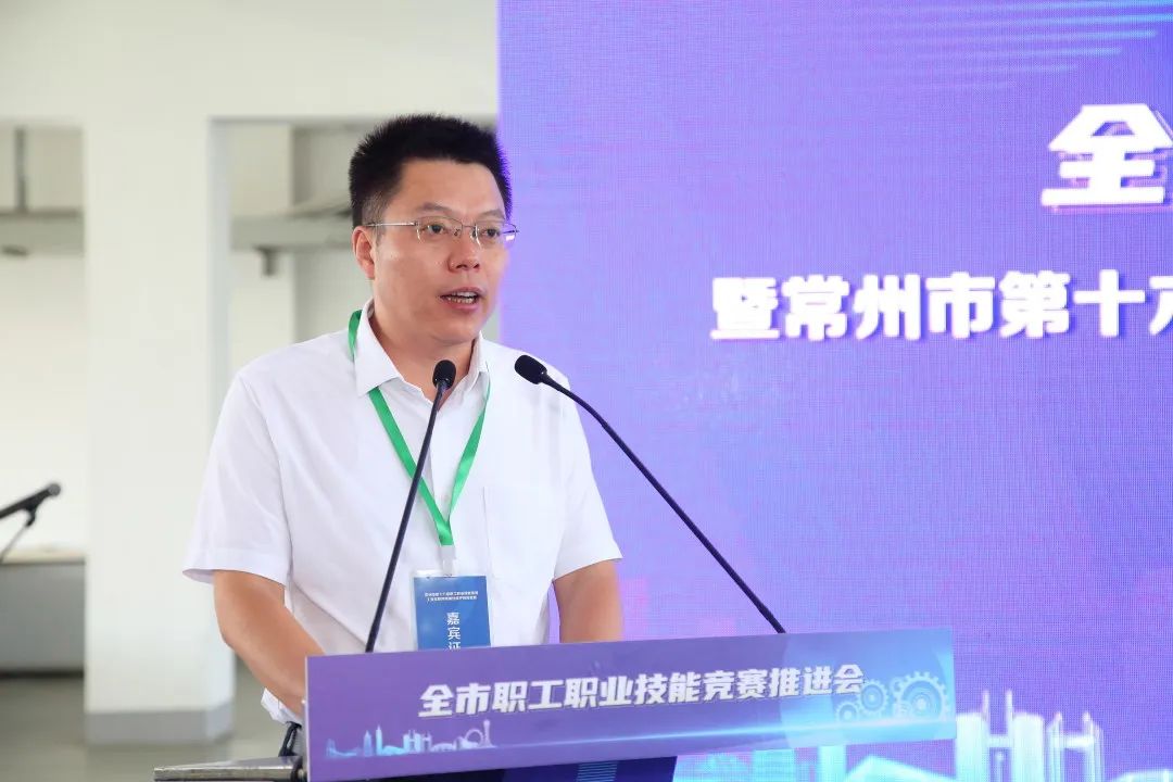 7月10日上午,常州市职工职业技能竞赛推进会暨第十六届职工职业技能竞赛工业互联网预测性维护技能竞赛在常州科教城现代工业中心开幕。美彩国际党组书记、副主席刘卫国出席并讲话。市科教城党工委副书记、工会主席王元兵致辞。市工信局副局长宗纲、市总工会副主席宣建强参加开幕式。出席开幕式的领导共同启动本次竞赛。