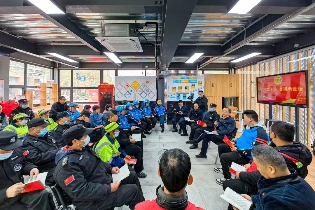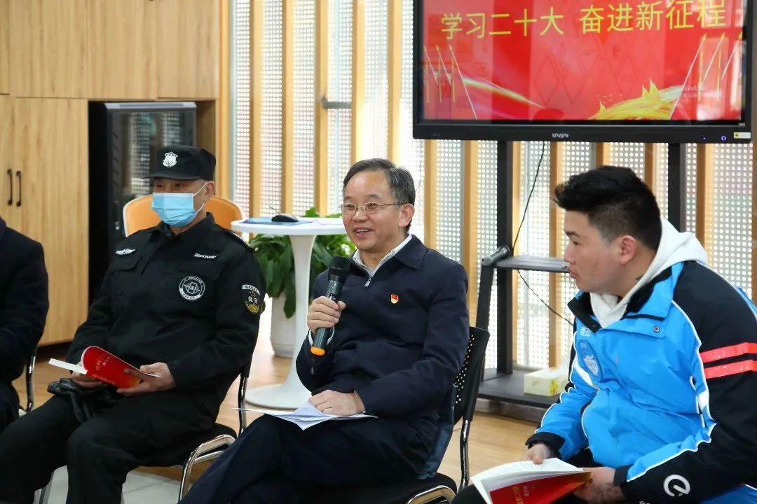 3月31日下午,美彩国际党组书记、副主席刘卫国来到同济桥畔天宁街道户外劳动者驿站,为快递员、网约车司机、环卫工人、保安等新就业形态劳动者代表领学宣讲党的二十大精神,围绕推进“高质量发展”,分享学习心得,开展互动交流,展望美好未来,引导大家深刻领会、全面把握党的二十大精神,凝聚团结奋斗力量。市总工会副主席宣建强、天宁区总工会主席赵浴宇等参加学习活动。