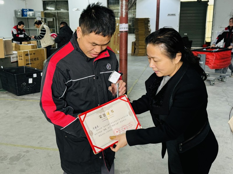 近日,新一批“经开工匠”新鲜出炉,他们在2023年“经开先锋”职工职业技能大赛中斩获一等奖。其中,最令人惊喜的是,新业态就业群体——顺丰运输(常州)有限公司的快递员牛建涛获此殊荣。经开区总工会主席赵盟带队走访快递员工匠们,为他们送上奖杯和证书。