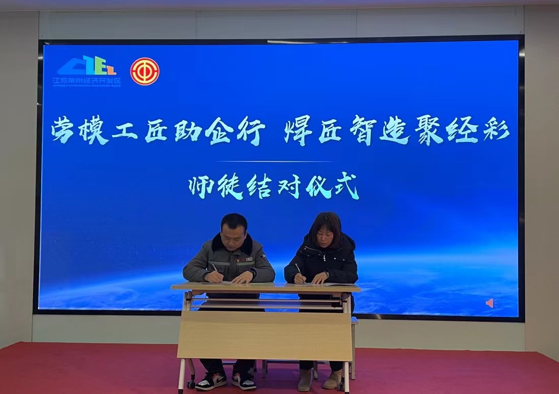 为有效发挥劳模和工匠人才作用,助力企业高质量发展,常州经开区总工会积极探索“劳模工匠助企行”专项行动实践路径。经过前期对劳模工匠个人技能和企业服务需求清单的梳理,发现经开区劳模技术服务队24名成员中共有6名焊接专家,且有多家企业有焊接技术服务需求。 经开区总工会根据这一特点,于1月25日召开了“劳模工匠助企行 焊匠智造聚经彩”焊接专场对接会,成立技术服务队焊接小组,与需求清单中提出焊接技术服务需求的6家企业进行专项对接。 活动首先举行了经开区劳模工匠技术服务队焊接小组成立仪式。小组包含经开区6名焊接领域工匠大师,由全国劳模、中车戚墅堰机车有限公司焊工高级技师张忠、吴淑玄分别担任组长、副组长。