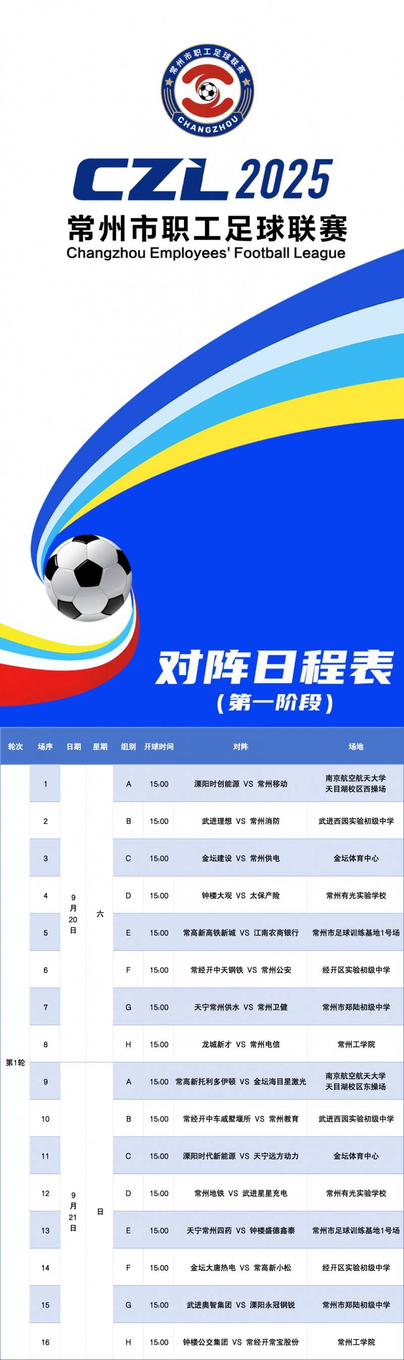 | 常州市职工足球联赛本周末开赛!赛程安排公布 |
