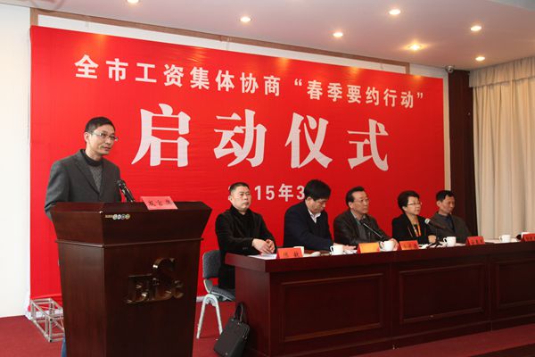 近日,常州市协调劳动关系三方机制工作委员会隆重召开“全市工资集体协商‘春季要约行动’启动仪式”。中天钢铁集团作为唯一一家企业代表,上台与大家共同分享了企业工会探索实践“两个结合,五个一遍”工资集体协商模式,共享协商成果、助推和谐发展的工作经验(全文可在本网站“下载专区”下载),强力电子新材料股份有限公司工资集体协商案例作了书面交流。区总工会副主席唐国贤、高新区总工会副主席吴允超,区三方机制工作委员会、工资集体协商讲师团和企业工会主席等部分成员和代表参加启动仪式。 “两个结合,五个一遍”集体协商模式,是武进工会积极贯彻“两个普遍”要求,大力推进企业民主管理,有效维护广大职工权益,助推企业和谐健康发展的创新成果。2011年在中天钢铁集团试点成功并在全区企业推行。沈志刚代表中天钢铁集团工会在启动仪式上作了交流发言,他们认为: