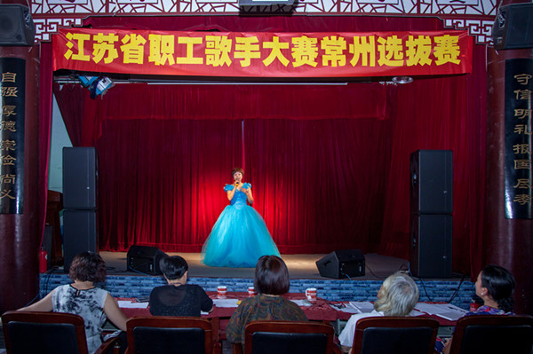 9月8日,“全省职工歌手大赛常州选拔赛”在工人文化宫大成殿举行,选拔赛以“纪念中国人民抗日战争暨世界反法西斯战争胜利70周年”为主题,经过全市各级工会推荐,共有25位职工歌手参加比赛。 选拔赛比赛共分为流行、民族、美声三个组别,评委当场打分,现场亮分。 在演唱的过程中,职工歌手们为观众们上演了一场视听盛宴,或深情款款、或富于动感,歌声飞扬余音绕梁,将自己对祖国的热爱、对音乐的理解、对梦想的执着诠释得淋漓尽致。经过激烈角逐,最终,教育工会选送的纪荣平、溧阳工会选送的朱文章等6位选手入围,他们将代表常州参加江苏省职工歌手大赛。