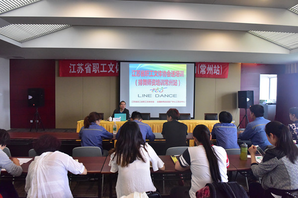 培训班在中车戚墅堰机车车辆工艺研究所有限公司举行,来自全市各级工会推荐的优秀文体骨干、戚研所职工等近百人参加培训,全国排舞运动推广中心技术委员会副主任、国家级裁判员、江苏省总工会职工排舞培训导师朱冬喜,全国排舞运动推广中心技术委员会委员,国家级裁判员沈金花前来授课。