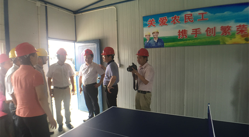 7月26日上午,烈日当空,钟楼区领导深入基层一线,向全区所有坚守高温岗位、默默奉献的广大一线职工进行夏季“三送”慰问活动,发放防暑慰问品。 在邹区镇重点工程戴安花园安置区的施工现场,一行人参观了工地农民工业余学校和职工小屋,屋内设空调、医用急救箱、乒乓桌,还放置了各类报刊杂志。施工单位不仅给职工提供了防暑降温的休息处,同时也丰富了农民工的业余休闲活动。区领导亲切慰问了生产一线的建筑工人,并送上了风油精、毛巾等防暑降温物品,叮嘱他们要劳逸结合,注意休息,注意安全,应对高温天气,合理的安排好作息时间,同时要求全区各级工会督促企业落实好《防暑降温措施管理办法》的规定,认真执行高温天气期间合理安排工作时间、缩短职工露天连续作业时间、减轻劳动强度等规定,倡导形成全社会关爱职工、关注职工健康的良好氛围。 钟楼区委副书记、政法委书记董彩凤,副区长何海平,区总工会主席许立新,邹区镇副镇长李文兴参加了慰问活动。