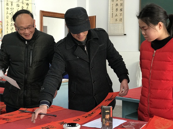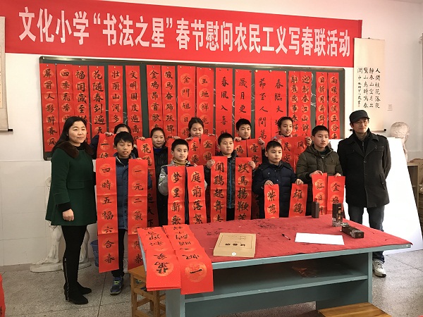 | 2017年溧阳市文化小学书法之星为 农民工义写春联 ——妙笔生花送祥瑞,翰墨留香迎新春 |