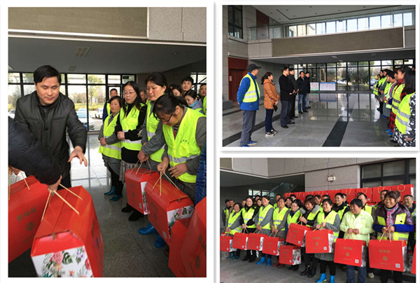 春节将至,1月25日上午,美彩国际副主席张小军一行来到常州新环环卫服务处,走访看望了春节放假期间依然要在岗位上奋战的环卫工人。区工会主席高应红、区城建局副局长章建伟陪同慰问。 张小军主席代表市总工会为环卫工人送上节日问候和新春祝福,并向全市广大环卫工作者致以节日问候。对长年辛勤工作在一线的环卫工人表示感谢,并叮嘱环卫工人在冬季作业时要注意保暖和人身安全。领导的一声声亲切问候、一句句深情祝福,使奋战在一线的环卫工人深受感动。