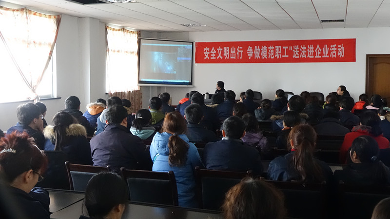 2月24日下午,金坛区总工会副主席石新华、区司法局副局长郭小强、东城街道总工会副主席郭红梅等一行来到江苏凯灵电器开展“安全文明出行、争做模范职工”送法律进企业活动。 公安局交警大队陆旭东警官为大家讲解了上下班途中及生活当中应当注意的各项交通法规,告诫我们所有职工要规范出行,规避风险,注意安全。 金坛区总工会石主席对参与活动的所有职工提出三点希望:一是要学法懂法;二是要遵纪守法;三是要遇事找法。并表示以后区总工会还将继续开展形式多样的送法律进企业活动,进一步增强企业经营管理人员和广大职工的法律意识、法制观念,提高企业依法经营管理的能力和水平。 活动现场,律师现场接受职工法律咨询,为他们解答了关注的法律热点、难点和自身有关劳动合同签订、工伤保险赔偿等相关问题,同时发放《职工劳动权益简明手册》等宣传资料100余册。大家纷纷表示,开展这样的活动,学到了生活工作中的基本法律知识,知道了如何运用法律武器维护自身合法权益,很受益,很有收获。