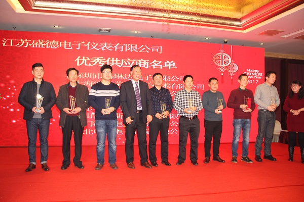 岁月如歌,跋涉似舞。江苏盛德电子仪表有限公司工会组织召开了2016年度表彰会,会议以“务实求精、创新超越”为主题,在会上表彰一批优秀员工(包括22对优秀夫妻员工)。 表彰会由工会主席冯骋,来自公司各岗位员工带来了形式各异的表演:爵士舞蹈开场、三句半、舞蹈等精彩节目赢得了阵阵掌声。抽奖环节更是掀起了表彰会高潮,四十八名幸运儿抽到了不菲的红包。 表彰会上,董事长吴建民用三句话表达了对2016年度的总结:感谢、希望、祝福。感谢公司领导班子的带领并且在全体员工的共同努力下,公司2016年产值16245万,营业收入16030万;希望各位嘉宾供应商一如既往的支持,保持共赢的局面,公司2016年9月获得了2014-2015年度常州市守合同重信用单位;祝福员工在企业开心愉快,工资收入年年攀新高!表彰会也对夫妻员工进行了表彰,多年来公司对员工的关爱,使公司的夫妻双员工共达到了22对!夫妻员工在表彰会上纷纷表达了对公司的信任和感谢无微不至的关怀,希望能在这个和谐大家庭中继续奋斗,创造更加辉煌的明天!(狄俊 崔静) |