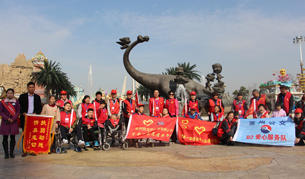 3月28日上午,常州恐龙园股份有限公司工会的学雷锋志愿者们迎来了来自全国各地30余位重残儿童,他们一起走进中华恐龙园,与恐龙馆内的恐龙化石进行了一次亲密的接触。 本次做客的残障人士多为行动不便轮椅客。恐龙园工会在安排线路上充分考虑了这一点,制定了以游园观演为主的活动方案,并全程参与在园区活动的各个环节。当孩子们看到绽放的郁金香、听到亲切的“你好!”,眉宇间的阴霾一扫而空,脸上泛起了笑容。在恐龙馆中见识了各类恐龙化石之后,海狮表演馆里能跳会算的海狮又给了他们不小的惊喜;而泰象谷里呆萌、滑稽的大象表演则彻底逗乐了大家,一个个笑的前俯后仰;当炫酷的恐龙骨架车和仿真恐龙从身旁经过,孩子们更是激动的不得了,纷纷驻足合影留念。 无私的爱心,无限的希望,恐龙园公司在注重企业效益的同时始终不忘关注社会弱势群体,公司工会组织的学雷锋志愿者服务队一直活跃在社会公益活动第一线。从年初的“格桑花”到现在的“轮椅客”到未来的“助学游”,恐龙园股份正用自己的实际行动向社会传递正能量,让“爱让希望永存”的公益理念潜移默化融入到每个人的内心深处。