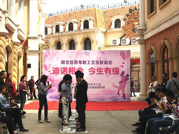 4月16日上午,由新北区总工会主办,恐龙园迪诺水镇承办的“迪诺相会今生有缘”大型相亲交友活动在恐龙园迪诺水镇西侧街缘分大道举行。 来自全区的20余家企事业单位的300多名单身职工参加了本次活动。活动开始前夕,相亲会主会场上的众多单身男女就开始浏览缘分大道两侧悬挂的信息卡片,以寻找合意的对象。 活动通过趣味游戏互动的分组环节,让单身男女职工打破尴尬氛围,破冰相识,经过“最受欢迎男女嘉宾”“这报纸游戏”“背靠背夹气球”“接力送水”等互动游戏,单身男女青年通过合作完成游戏,对彼此都有了更深刻的了解。通过一上午的交流互动,共有10对有缘人成功牵手,共享迪诺水镇皇家马车之旅。 来自北汽集团(常州)分公司的单身青年高先生说:“工作几年了,很少有时间去相亲,至今还没有另一半,希望今天能找到心目中的‘她’,工会组织这次活动,不仅为我们提供了一次认识了解机会,更减少了相亲时对方信息不符的顾虑。”而另一位幼儿园教师刘女士也非常感谢本次活动提供的平台,让她能有机会结识自己心中的白马王子。 新北区总工会主任科员张赛月说,工会就是职工的‘娘家’,组织这次活动就是要最大限度地服务职工、关爱职工,为广大适龄单身职工当红娘、搭鹊桥、牵红线,让工会真正成为职工群众信赖的贴心的‘娘家人’。迪诺水镇作为一个广大单身职工寻找幸福的基地,希望越来越多的有情人在这里终成眷属。
