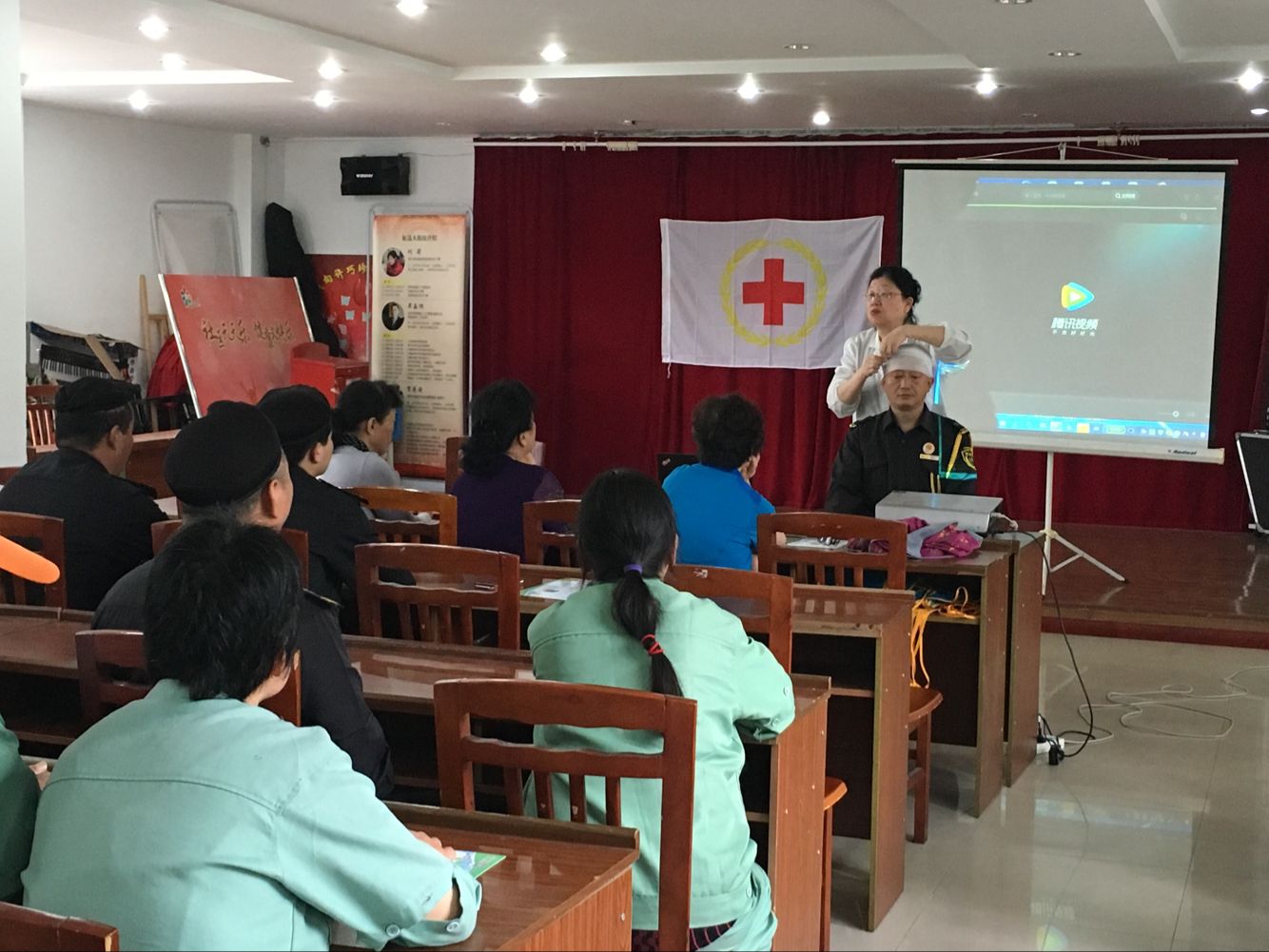 为了在辖区普及卫生救护知识,培养职工群众的安全意识,提升自身保护能力和掌握自救、互救本领,近日,钟楼区南大街金色新城社区工联会组织辖区企业职工开展了红十字急救培训。 本次救护培训,红十字志愿者以平实的语言和事例,结合日常生活,向职工们讲解了应急救护的重要性和基础知识,并现场示范了急救知识的应用,包括心肺复苏技术、常见急症处理,以及包扎等意外伤害处理。同时也对员工进行了地震等自然灾害突发时的自我防护培训。