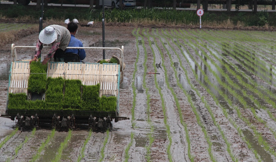 “这台机子栽插得快!”“这台机子栽插得直!”围观群众啧啧称叹。6月11日中午,