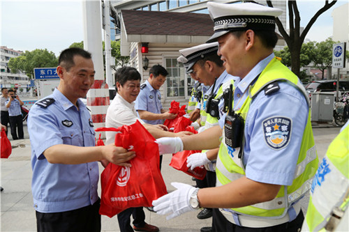 近日,金坛区总工会主席史益群、副主席石新华一行在金坛区公安分局政委贺国洪、副局长王国元的陪同下,深入城区中队五角场岗亭,看望慰问了奋战在高温下的执勤交警,为他们送上解暑降温用品,并对他们的辛勤付出表示感谢,勉励其继续发扬不怕困难、连续作战的工作作风,为市民出行提供安全畅通、文明有序的交通环境,并以更加饱满的热情,全力以赴投入文明城市创建攻坚战。 金坛区公安分局工会 |