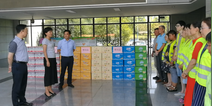 7月25日上午,新北区人大常委会主任陆敏、管委会副主任、副区长王宇伟、区政协副主席、城建局局长李小平一行来到常州新环环卫服务处,慰问了高温下仍然坚守在工作一线的环卫工会职工,为他们送来了慰问品和慰问金。 陆主任代表区四套班子对环卫职工奋战高温、坚守岗位、勇于奉献的精神给予了赞扬,对他们为城市长效管理付出的辛勤劳动表示肯定和感谢。同时,陆主任也亲切叮嘱环卫工人在夏季高温时段一定要注意防暑降温,合理安排作业时间,确保自身安全。