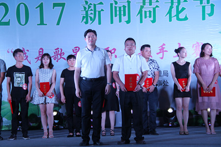 7月22日晚上,新闸街道荷花节举办“我是歌星”职工歌手大赛总决赛。 本次比赛自报名以来,受到了街道广大职工的积极参与,经过辖区企业、村工联会层层推选,共有40位选手参加。本次活动共设评委六名,比赛采用十分制,从服装和精神面貌、演唱歌曲难度和技巧、歌曲(音准、节奏、音色、情感等)三个方面进行整体打分。 来自基层的15位选手们根据各自的演唱风格,选择通俗、流行、民族等多种演唱方式,精神饱满,热情洋溢,为观众们奉上了一场充满激情与活力的视听盛宴。经过激烈的角逐,共评出一等奖一名、二等奖二名、三等奖三名。 新闸街道办事处主任王元庆为一等奖获得者余光明颁奖;党工委副书记丁贵东为二等奖获得者姚先圣、孙智平颁奖;街道党工委委员吴怀君、吕家胜为三等奖获得者江雪芬、刘燕婷、王倩颁奖。