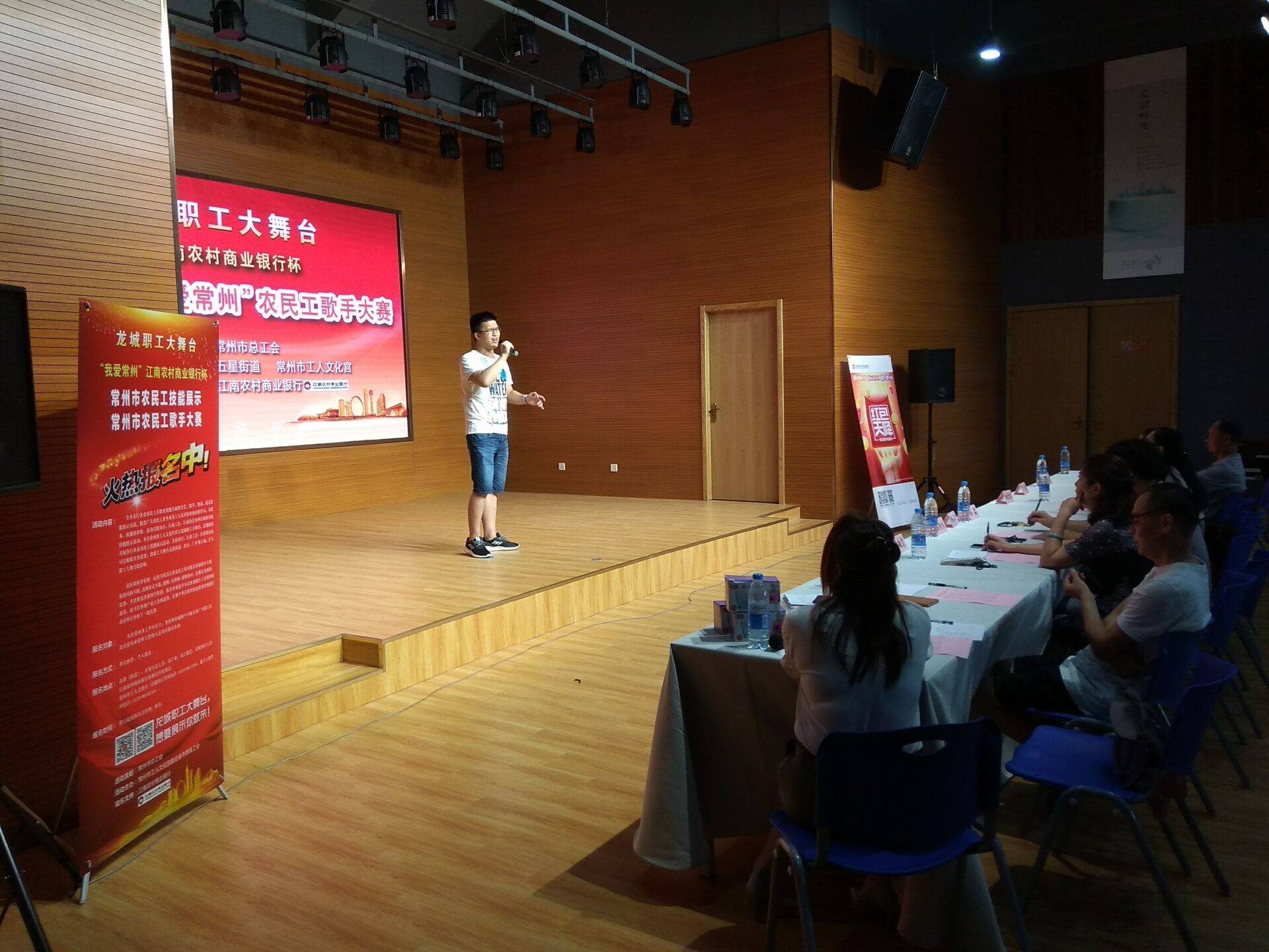 为响应美彩国际开展的“中国梦 劳动美 幸福路”情系农民工系列文化活动,不断丰富农民工精神文化生活,提升农民工的幸福生活指数。8月1日下午14:00,五星街道总工会在ASK五星智享空间举办了五星街道“我爱常州”农民工歌手大赛。 本次比赛采用十分制,从服装和精神面貌、演唱歌曲难度和技巧、歌曲(音准、节奏、音色、情感等)三个方面进行整体打分。来自基层各个单位的十四位选手们根据各自的演唱风格,选择通俗、流行、民族等演唱方式。通过激烈的角逐, 13号选手 张光勇演唱的《大红公鸡毛腿腿》获得一等奖,8号 沈优、9号钱丹娜获得二等奖, 12号 周星辰、7号 叶振宏、14号肖麟沣获得三等奖。