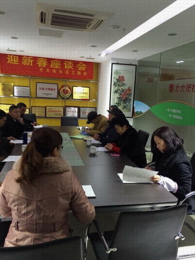 春节将至,2015年2月3日下午,钟楼区荷花池街道北大街社区工联会在社区会议室召开了2015年迎新春座谈会暨新春慰问困难职工活动,辖区企业工会代表、职工代表参会活动。座谈会由社区书记工联会主席吴彩丽主持。座谈会上,罗亚芬讲述了2014年社区工会工作开展情况和取得的成绩,介绍了2015年社区工会活动和建设工作思路,就新的一年提高工会组织建设质量和服务职工水平,征求了意见建议。在活动现场,社区物管代表还开展了安全知识讲座和民情恳谈,宣传了治安防范、消防安全小知识,提醒大家在年末岁尾要提高防范意识,注意防火防盗窃,保护好人身和财产安全。同时对企业困难职工进行了慰问,数九寒冬用爱心温暖了困难职工。 新的一年到来,我们将继续秉承团结创新为民务实的精神,扎实抓好工会服务和建设,努力提高各项工作实效和服务质量,实实在在的为职工和企业服好务。