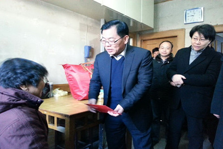 2015年2月10日,在新年即将来临之际,为了让辖区退休困难职工、侨胞侨属感受党和政府的关怀,过一个温馨祥和的节日,钟楼区委四套班子领导周朝顺、何琴、张菁等人在南大街街道主任黄兴威和街道副主任冯杰的陪同下,来到南大街街道分别走访慰问了辖区的重病退休职工与侨胞侨属,向他们送上慰问金,带去节日的问候和祝福。 在走访过程中,慰问组分别来上门探望了退休职工卞毛大、困难职工闫景会、重病退休职工顾锡祥和印尼归侨江月仁,区领导每到一处,都会与每个成员进行亲切交谈,问寒问暖,了解他们的家庭生活状况,并叮嘱他们有什么困难和问题可随时联系,要照顾好自己,并提前为他们送上节日的祝福,为他们分别送去慰问金和米、油、棉被等生活用品。 此次慰问活动,体现了党和政府对困难职工、退休人员和侨胞侨属的关怀,让这些家庭倍受感动,都说谢谢各位领导,临近春节还拨冗前来慰问,深感党和政府暖暖的关怀,开心无比。