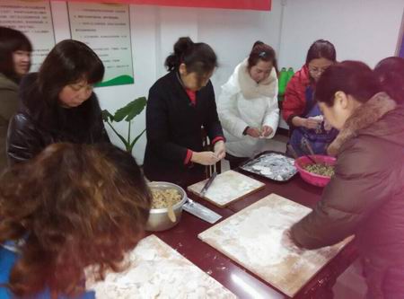 春光三月,万象更新,在这生机盎然的季节里,为了让妇女们过一个有意义的节日,推行社区、物业、志愿者“三位一体”新时期学雷锋志愿服务常态化工作模式,推动区域性学雷锋活动向常态化、制度化、规范化方向发展,在全社会形成助人为乐、奉献光荣的浓厚氛围,广化桥社区妇联和社区工联会、世纪明珠园物业公司和社区学雷锋志愿者将社区妇女和辖区工会企业外来务工妇女请到世纪明珠园物业公司服务大厅包饺子,一起庆祝“三八”妇女节。