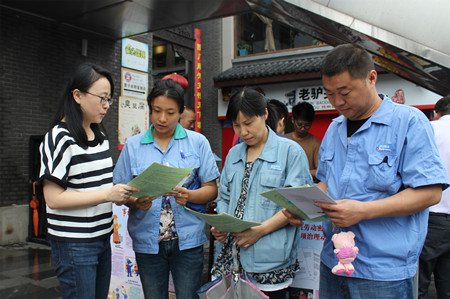 今年6月是全国第十四个安全生产月,为提高广大职工群众的安全意识,宣传党和国家安全生产的方针、政策,普及安全生产知识,预防和遏制各类安全生产事故的发生,16日上午,钟楼区永红街道总工会组织安监、司法、综治等部门在清潭院街广场开展了以“加强安全法治、保障安全生产”为主题的安全生产宣传咨询日活动。活动由街道安监站站长姚伟文主持。 今年的安全生产月,永红街道将围绕“加强安全法治、保障安全生产”这一主题开展,弘扬安全生产文化,树立安全诚信意识,安全责任意识和安全道德观念,稳定和发展安全生产形势,为实现永红又好又快发展提供可靠的安全保障。本次活动展出安全生产法律法规图片展板10块,发放各种安全生产、全民安全防护知识宣教挂图、现场急救—作业伤害紧急救助手册1700余张,并就广大群众在安全生产中遇到的问题提供了现场咨询。 活动最终在企业职工,村、社区安技人员,和街道相关工作人员的集体签名中落下了帷幕。