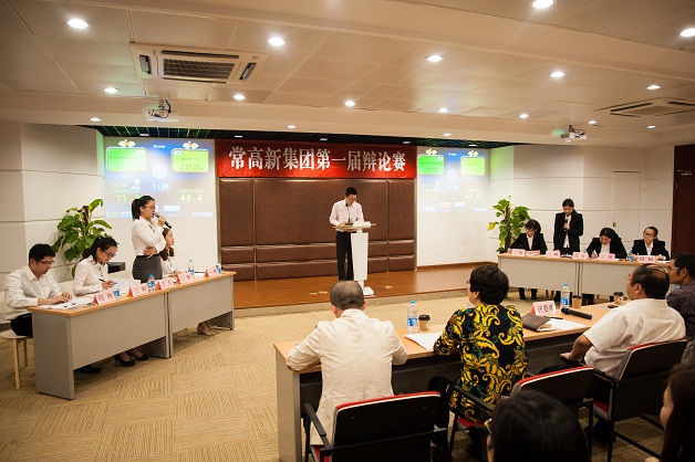 经过一个月七场比赛的对决,常高新集团首届辩论赛于10月10日在小微金融服务中心4楼会议室落下帷幕。黑牡丹一队和常高新-中润花木队从预赛、半决赛中脱颖而出,站上了当天决赛争霸的舞台。本次决赛有幸邀请到了集团董事长、总经理盛新,区工会副主席张赛月,团区委副书记秦浩杰,区人力资源中心主任刘伟和常工院资深辩论队老师张军等5位嘉宾担当评委。 决赛双方就“合作与竞争,哪个更能使企业发展”这一话题展开讨论,正方——常高新-中润花木队的论点是合作更能使企业不断前行,反方——黑牡丹一队则坚持竞争才是企业发展的源动力。双方在立论、攻辩、攻辩小结、自由辩论、评委提问及总结陈述多个环节,你来我往、针锋相对、唇枪舌战,犀利地抓住对方的漏洞予以反击。场上“火药味”虽足,但双方辩手机智的反应能力、严密的逻辑思维、诙谐的言语风格及默契的团队合作,掀起阵阵高潮,场下观众也无不折服。 在这场强强对决中,黑牡丹一队凭借整体出色的发挥,收获桂冠,常高新-中润花木联队名列亚军。在之前结束的比赛中,国展资产队和黑牡丹二队并列季军。同时,大会还评选出8位最佳辩手,分别是来自黑牡丹一队沈海霞、常高新-中润花木联队潘翔、新铁投资-高铁客运队濮阳、国展房地产队朱天宇、黑牡丹发展队徐晓晶、常金控代表队杨波、国展资产队王丽娜,黑牡丹二队蔡语嫣。 最后,盛总结合集团首届辩论赛的举办,要求全体青年员工在工作中进一步提升思辨能力及团结协作能力,并号召青年员工紧跟热点时事,开展“如何做好共产主义接班人”的思考讨论。