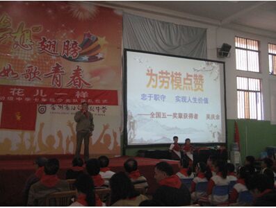 10月14日下午,由钟楼区荷花池街道西一村社区工联会和北郊初级中学联合举办的劳模精神进校园——“为劳模点赞”劳模先进事迹宣讲活动在北郊中学体育馆举行。 活动邀请了原冶金机械厂退休劳模、全国五一劳动奖章获得者吴庆余同志为老师和学生们讲述了他忠于职守实现人生价值的工作经历。劳模的先进事迹感染了每一位听众,同学们们纷纷表示,感受到满满的正能量,要学习他们爱岗敬业、无私奉献、对技术知识不断钻研的劳模精神,以学习为中心,从自身做起,从点滴做起。同时劳模的先进事迹激发了老师们工作热情,纷纷表示要以弘扬崇高师德、力行师德规范,做好学生的领路人为目标。