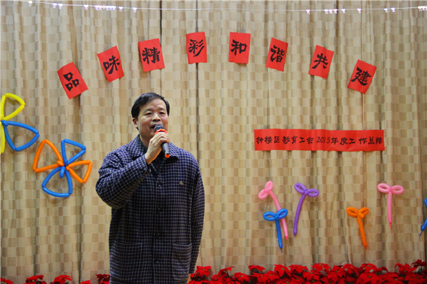2015年钟楼区教育工会以“围绕中心,服务大局,突出维权,多办实事”为基本思路,坚持“推动科学发展、促进学校和谐、服务中心工作、加强自身建设”的工作理念,在各方面取得了喜人的成绩。周建英副主席以《普惠服务,和谐共建》为主题,从加强学习培训,提高了工会服务水平和能力;普惠广大职工,提高工会服务职工的力度和广度;关爱女性职工,充分发挥女职工在钟楼教育发展中的作用;加强自身建设,规范工会财务管理;丰富文体活动,促进教职工身心健康;加强师德建设,提高全区教职工师德师能水平;注重建家工作,服务职工有成效等方面总结了区教育工会2015年的业绩。 同时,为了更好地开展2016年工会工作,周主席还向大家传达了《2016年钟楼区教育工会工作思路》,希望各基层工会能在加强工会组织的自身建设和民主管理,改进工作作风,团结全区教职工坚持正确的政治方向,弘扬劳模精神等方面作出了新的成绩。 随后,周主席介绍了区教育工联会根据年初的计划在全区范围内评选模范教职工之家和优秀工会积极分子的过程,宣读表彰决定和受表彰的模范教职工之家和优秀工会积极分子的名单,徐澄范书记为泰村实验学校工会、钟楼实验中学工会、常州市实验小学教育集团等15家集体颁发“钟楼区模范教职工之家”奖牌,为“钟楼区优秀工会积极分子”代表颁发荣誉证书。 会上,徐澄范书记发表了热情洋溢的讲话。他祝贺在此次评选活动中获奖的集体和个人,更对基层工会组织依靠党政工管理团队的力量,依靠教职工群众的支持,积极开展各项工作的表现给予肯定。徐书记还引用海伦·凯勒的名言鼓励每一个钟楼教育工会人:胸怀博大、锐意进取,学校工会一定能激发起全体教职工的昂扬斗志,为学校各项工作的开展保驾护航。 在第二个版块,觅渡教育集团朱华主席和西林实验学校中学部蒋惠清主席组织全体参会者一起开展了有趣的团队游戏,欢声笑语将活动推向了高潮。 总结过去,展望未来!2016年钟楼区教育工会工作将更加精彩!(孙 丹文/摄)