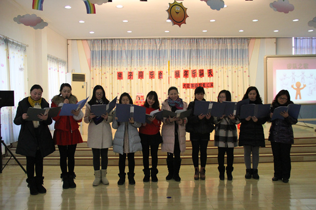 2016年1月18日下午,常州市清潭第三幼儿园的多功能室处处洋溢着新年的喜庆,清三幼迎新年暨退休教师慰问活动正在进行中。 活动在一曲《欢欢喜喜过新年》的音乐声中拉开了本次迎新年的活动序幕。整个活动穿插了表演、游戏和抽奖三种不同形式的活动。在第一个游戏“进化论”中,平日里循循善诱的老师们,此时也迸发出童心,“剪刀、石头、布”一个一个玩的不亦乐乎;随后的游戏“勇于承担”和“一棵松树摇啊摇”的集体互动游戏,既让老师们学会了在一个团队中要承担自己应有的责任,又锻炼了老师们敏捷的反应能力和团队合作精神;而大班年级组带来的音诗画《我们的团队》和中班年级组全体教师自制的微电影《新年到,好运来》更是将活动气氛推向了高潮。一波又一波的笑声从多功能室传出,每个人的脸上洋溢着节日的快乐。小班年级组的教师们为退休教师精心准备的新年祝福,也给每一位退休教师送去了祝福和温暖。 一个多小时耳目一新的游戏和表演令人精神振奋,一句句歌神,一声声祝福,体现了活动放松心情,增进感情、鼓舞士气、营造团结、和谐氛围的宗旨,表达了全园教职工对幼儿园的热爱和祝福。新的一年,清潭三幼的教职工们将继续满怀希望,继续向着梦想出发,让梦想在清潭第三幼儿园绽放。(丁琪媛文/郑燕春摄)