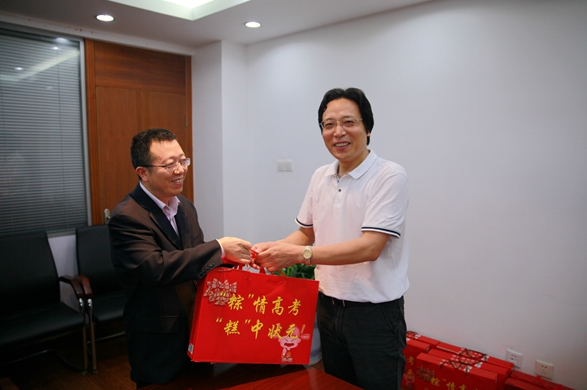 在高考即将来临之际,金坛区供电公司开展“‘粽’情高考、‘糕’中状元”慰问活动,总经理佘国正、纪委书记兼工会主席陆磊亲手为迎考的员工子女送上了一份祝福与鼓励。此项活动是该公司推进职工服务“5980”工程扶苗行动系列活动之一,体现了公司工会对员工无微不至的人文关怀。 (金坛供电公司工会 李萍) |
