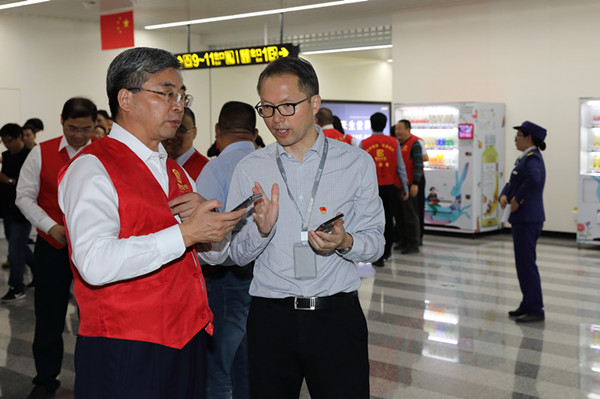 为深入推进“不忘初心、牢记使命”主题教育,2019年10月12日下午,市总工会机关党委组织开展“党员义工365”活动。来自市总工会机关和直属事业单位的60余名党员干部(分两批)组成志愿者服务队,分赴地铁1号线5个站点,帮助工作人员疏通人流,为群众提供咨询服务。通过身体力行的志愿工作,做到学习理论与服务实践相结合,进一步推动“不忘初心、牢记使命”主题教育深入基层、入脑入心。
