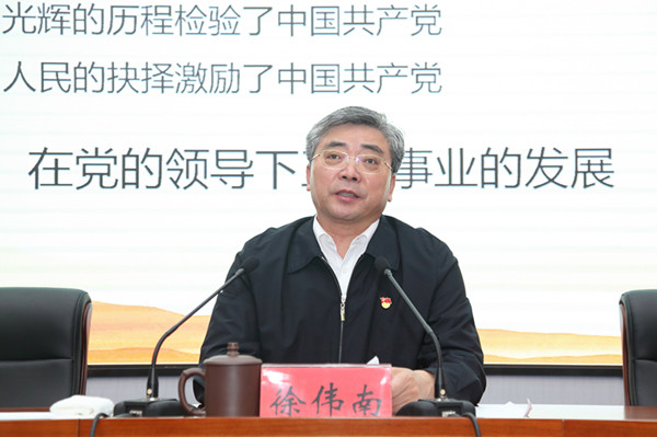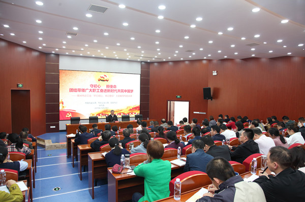 徐伟南指出,要“不忘初心使命,坚定信念跟党走”。他从“共产党在解放和建设时期的发展历程、历史为什么选择了中国共产党、在党的领导下工运事业的发展”三个方面进行详细阐释。徐伟南指出,优秀的基因塑就了中国共产党,光辉的历程检验了中国共产党,人民的抉择激励了中国共产党。新时代赋予中国共产党人新的使命任务是:高举习近平新时代中国特色社会主义思想伟大旗帜,决胜全面建成小康社会,夺取新时代中国特色社会主义伟大胜利,为实现中华民族伟大复兴的中国梦不懈奋斗!而新时代工会新的使命任务是:以习近平新时代中国特色社会主义思想为指导,坚持走中国特色社会主义工会发展道路,忠诚党的事业,竭诚服务职工,团结动员亿万职工为决胜全面建成小康社会、夺取新时代中国特色社会主义伟大胜利,为实现中华民族伟大复兴的中国梦不懈奋斗!