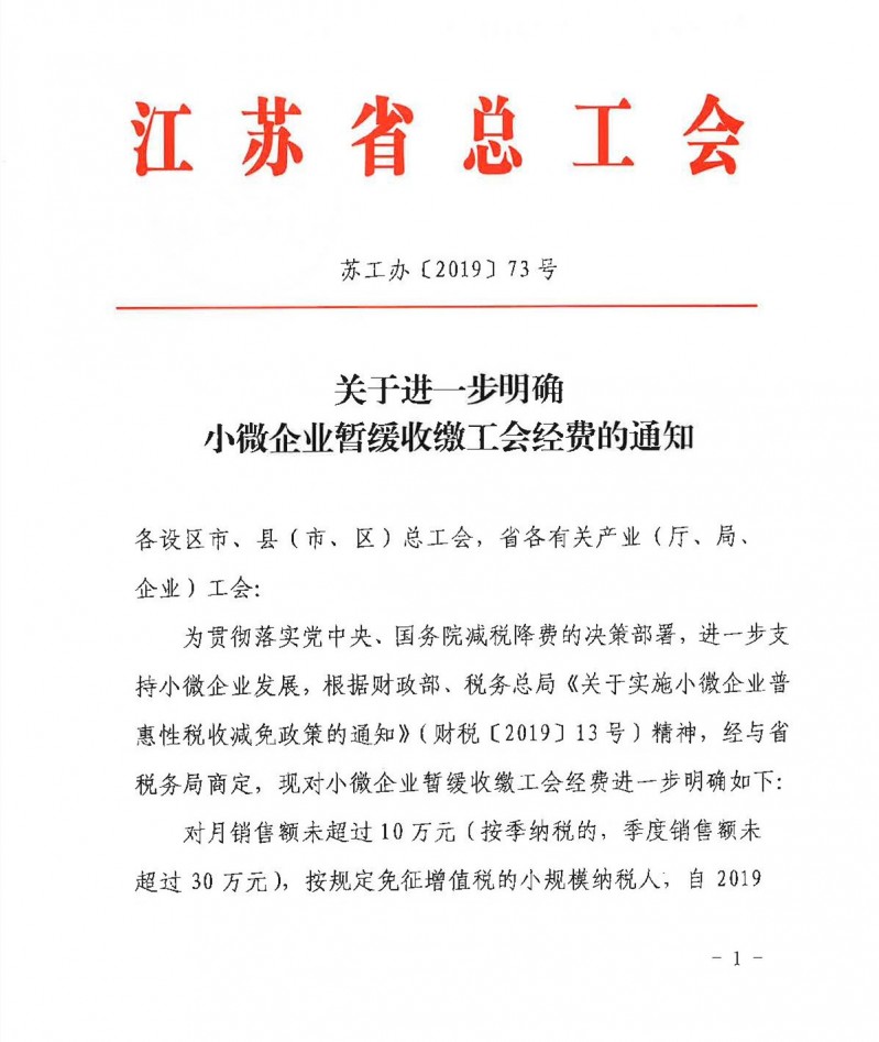 关于进一步明确小微企业暂缓收缴工会经费的通知