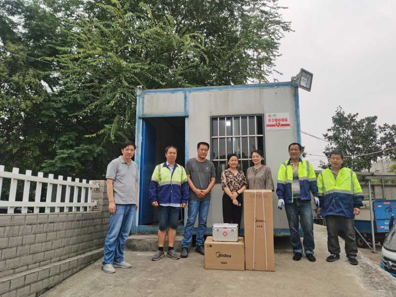 赵主席一行深入丁堰中转站等爱心驿站点,认真查看现场基础设备配备,了解爱心驿站的使用情况,对爱心驿站进一步的建设与发展提出意见建议。并亲切慰问了一线环卫工人,对大家始终坚守一线岗位,发扬不怕苦、不怕累的精神表示了充分肯定,并殷切希望一线工人在坚守岗位、做好本职工作的同时,保护好身体,并送上慰问品。