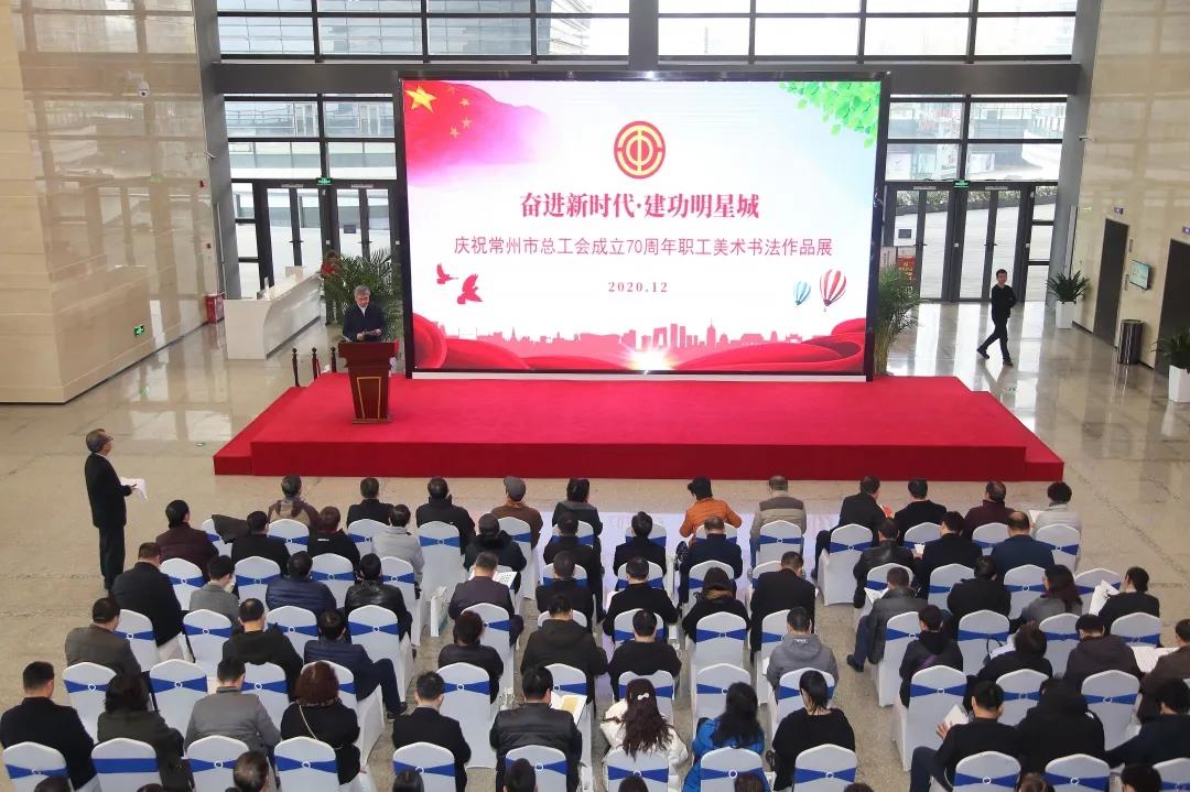 12月18日上午,“奋进新时代·建功明星城”庆祝美彩国际成立70周年职工美术书法作品展在常州美术馆开幕。此展旨在展望常州工会事业美好明天,激励常州工会干部和广大职工在社会主义现代化国家新征程上建功立业、奋进圆梦。常州市政协副主席、市总工会主席徐伟南出席并讲话。原市领导张晓霞、居丽琴、张力航、朱剑伟,原市总工会主席徐嘉南等工会老领导,阙长山、江可群、周俊炜、叶鹏飞、陈清、李啸东等美术书画界嘉宾出席。市总工会党组书记、副主席华飞主持开幕式。