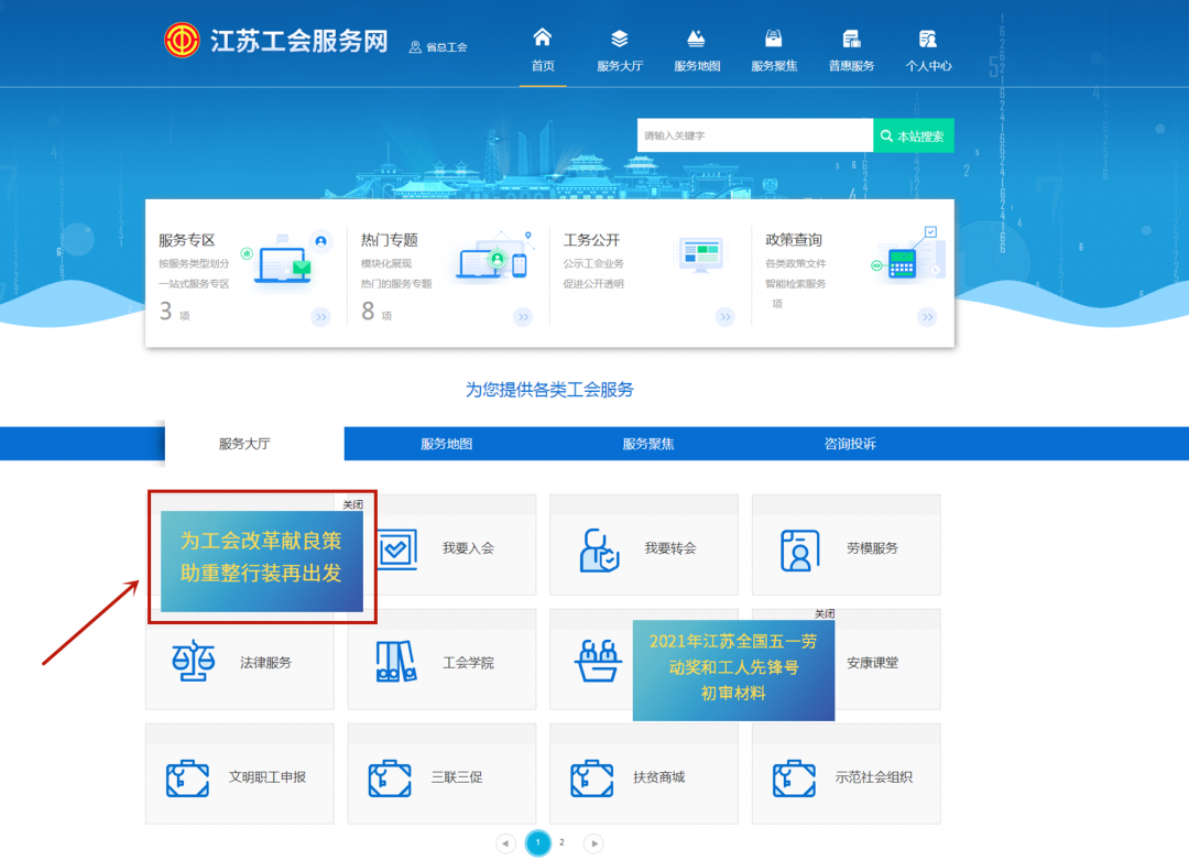 进入“江苏工会”服务网,复制下方链接至浏览器打开。